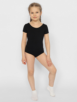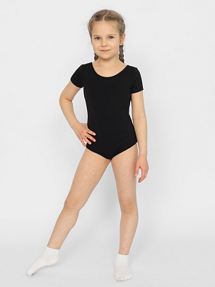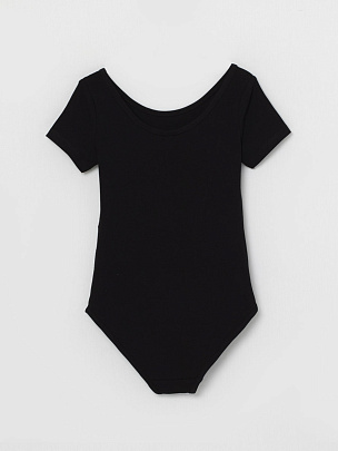 Купальник с коротким рукавом. Вырез горловины и проймы ножек окантованы бейкой из основного полотна.