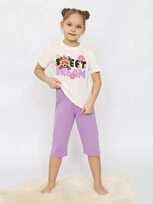 Пижама для девочки (футболка, бриджи) экрю