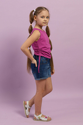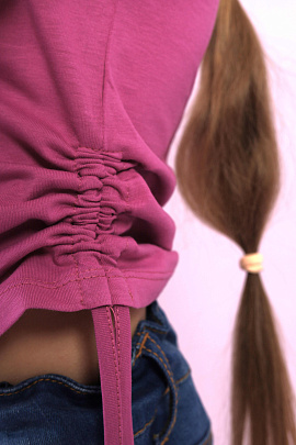 Трендовая майка-топ. Длина изделия может изменяться за счет функциональной кулиски в боковых швах. Мягкая и приятная на ощупь ткань позволяет коже дышать, а прочные швы гарантируют долговечность изделия. Майка-топ станет отличным выбором как для повседневной носки, так и для особых мероприятий. Базовый стиль и однотонная расцветка позволяют легко комбинировать эту майку с другими элементами гардероба вашей маленькой модницы.