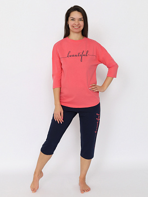Пижама для девочки (футболка, брюки) коралловая