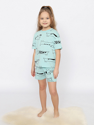 Пижама для девочки (футболка, шорты) светло-бирюзовая
