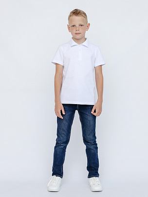 Рубашка-поло для мальчика. Модель с короткими рукавами и отложным воротником. Спереди застежка на пуговицы.