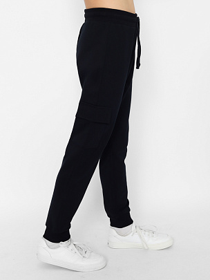 Брюки для мальчика с накладными карманами с клапаном. Нижние срезы брюк оформлены притачными манжетами из полотна с эластаном. Пояс притачной, с резинкой и функциональным шнуром. На карман настрочена декоративная жаккардовая этикетка.