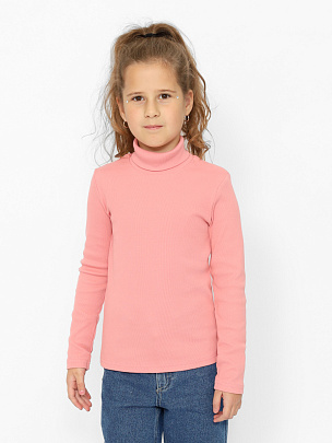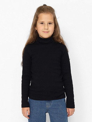 Водолазка с небольшим принтом на спинке для девочки. Модель прилегающего силуэта, с воротником-стойкой с отворотом и длинными рукавами.
