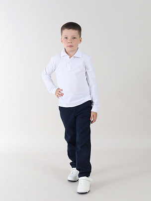 Рубашка-поло для мальчика. Рукава с манжетами. Модель с длинными рукавами и отложным воротником. Спереди застежка на пуговицы.